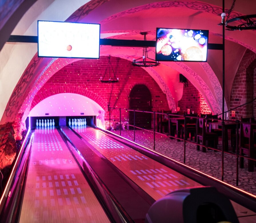 To klimatyczne miejsce mieszcące się w podziemiach zamku krzyżackiego idealnie nadaje się na kameralne spotkania z doskonale zaopatrzonym barem i profesjonalną obsługą. Czas spędzony w naszej kręgielni pozwoli oderwać się od trudów codzienności i w miłym towarzystwie spędzić czas. Klimat gotyckich cegieł połączony z nowoczesnością idealnie pasuje do organizacji turniejów bowlingowych.