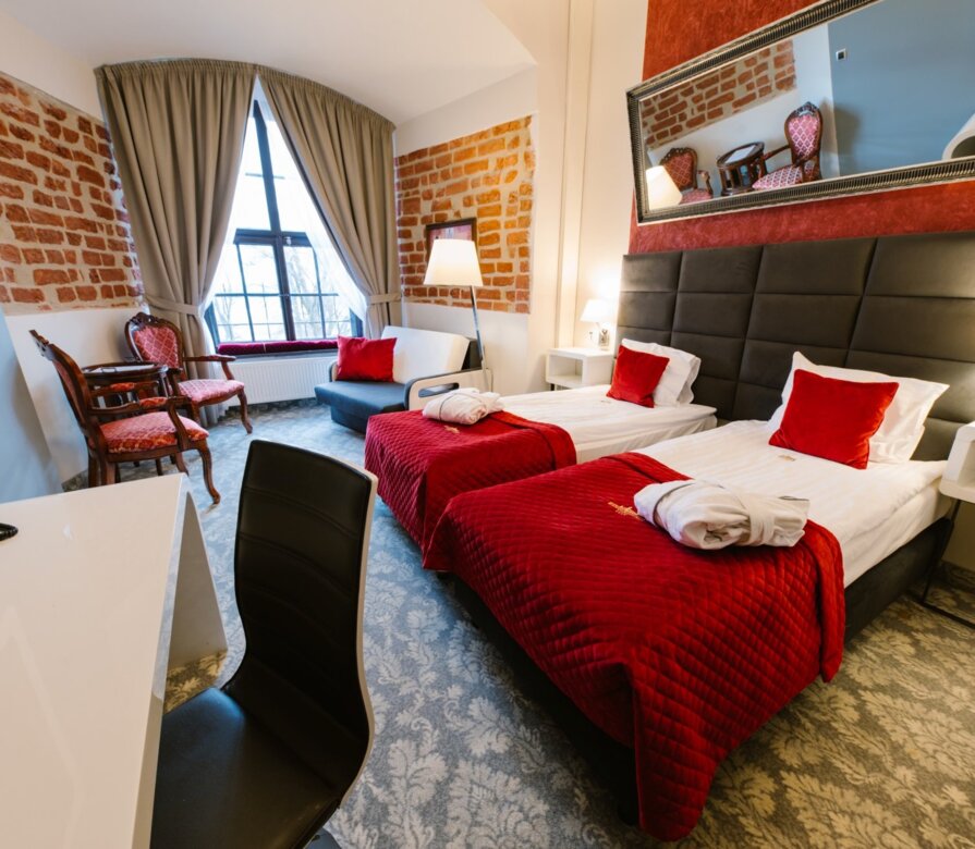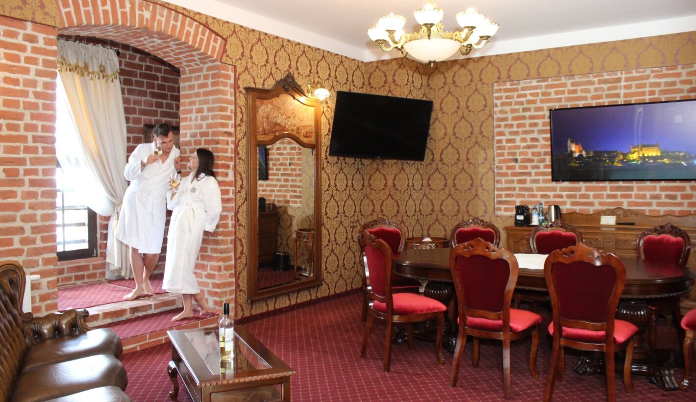 W samym Zamku oferujemy 17 luksusowych apartamentów. Przestronne komnaty o jedynym w swoim rodzaju wystroju, przenoszącym gości w czasy średniowiecza dzięki zabytkowym artefaktom, historycznym detalom, które tworzą ów magiczną atmosferę. Jednocześnie apartamenty stoją na najwyższym poziomie pod względem komfortu wypoczynku i użyteczności.