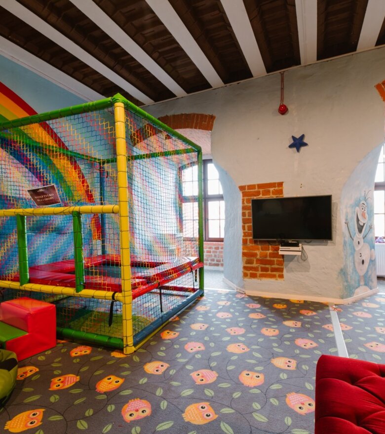 Zamek Gniew to hotel dla dzieci w pomorskim, który zadbał o prawdziwe królestwo zabawy. Sala „Pysiolandia” pełna kolorowych zjeżdżalni, basenów z kulkami i torów przeszkód zapewnia radość najmłodszym gościom przez cały dzień. Organizujemy także animacje, gry i warsztaty dostosowane do różnych grup wiekowych.